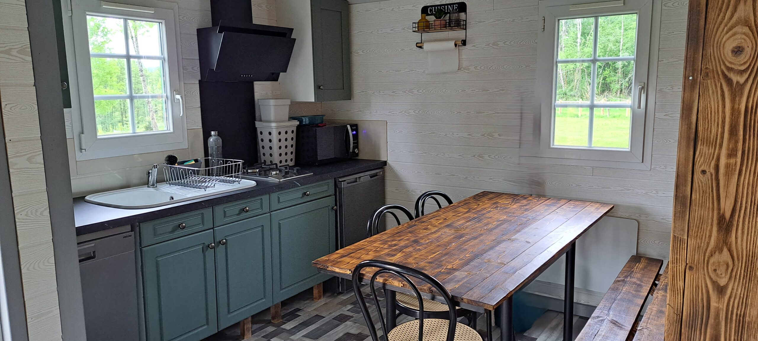 ✨ Le clin d’œil : Sous le soleil d’été ou les premiers flocons, le bois massif crée une ambiance que l’on ne retrouve nulle part ailleurs. On pose les téléphones, on écoute le silence de la forêt et on respire enfin.