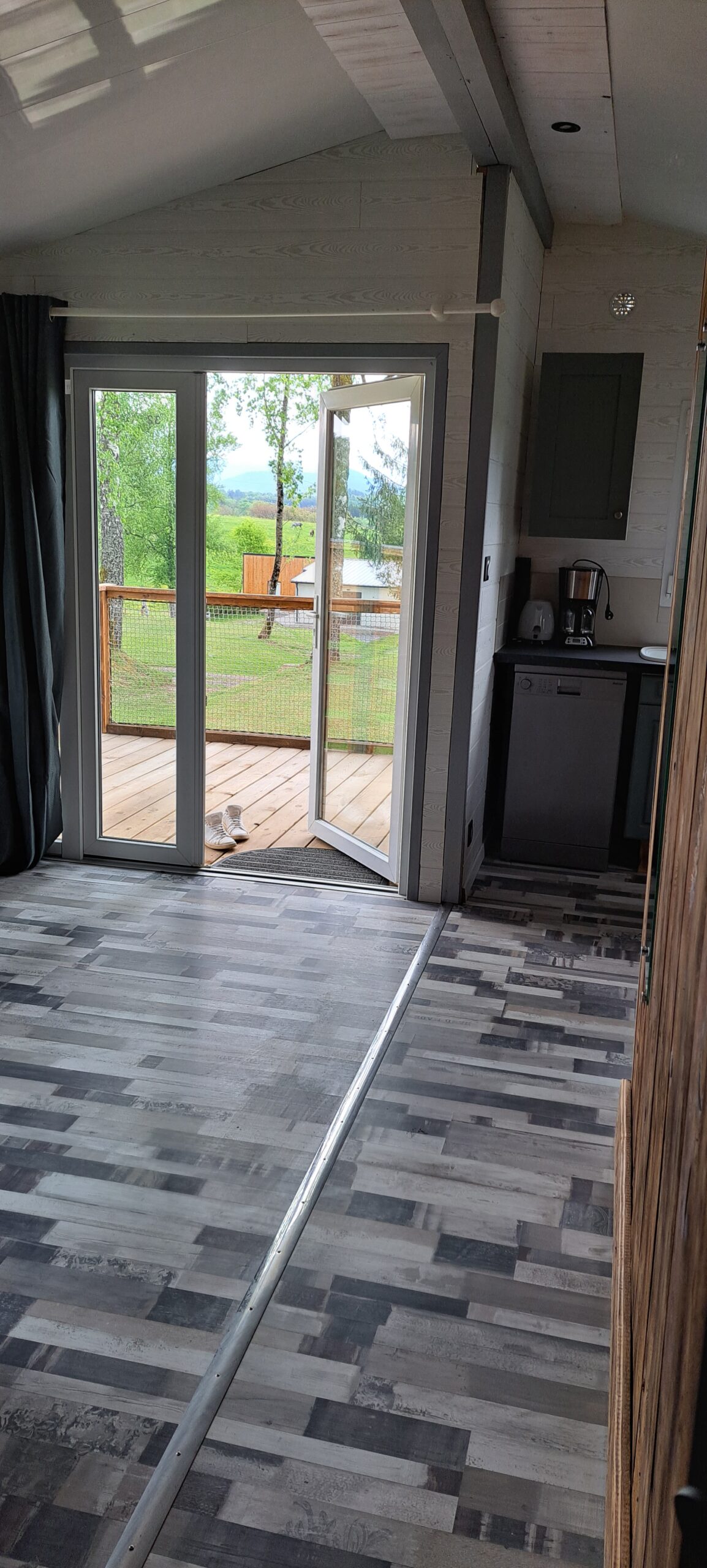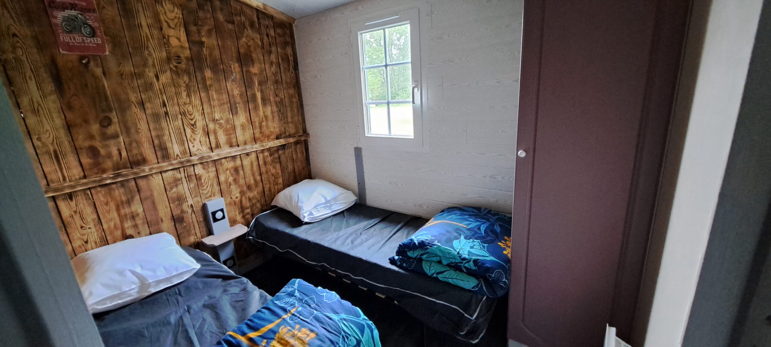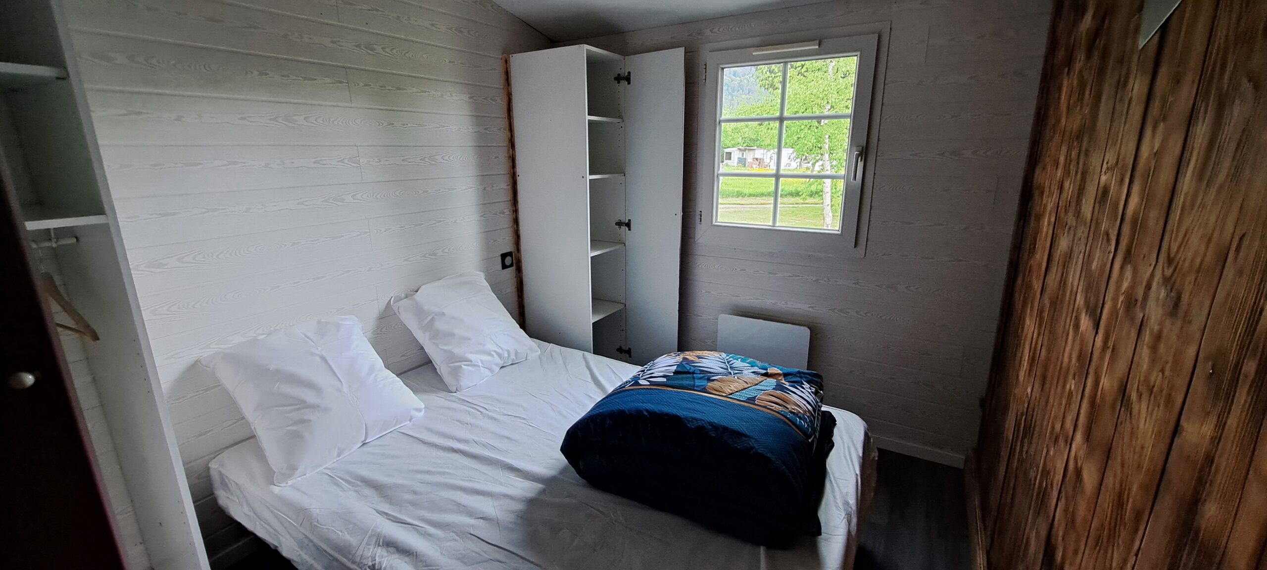 - ce chalet possède deux chambres : l’une avec un lit double et la seconde avec 2 lits simples. Vous trouverez un canapé-lit dans l’espace séjour. Ce chalet est doté d’un bel espace de vie, d’une jolie cuisine, salle de bain privative, d’un WC et d’une terrasse pour profiter des belles journées d’été.